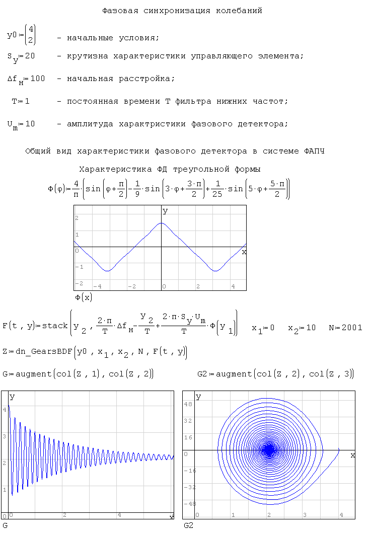 Рис. 5. 17. Программа расчёта фазовой синхронизации автогенератора