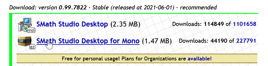 I noticed https://en.smath.com now has a banner stating free for personal usage with plans for organizations.