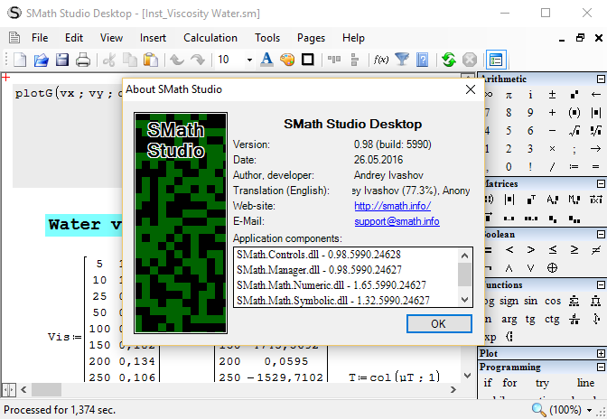 SMath Studio 0.98.5990 (26 May 2016) - Messages