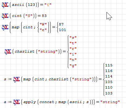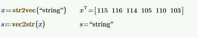 SMath Forum SMath Studio Questions Vector representation of Strings? 1 Pages (4 items) Vector representation of Strings? - Messages Go to last post #1 Posted: 9/21/2025 7:21:48 PM Stuart Bruff Y 0 likes in 4 posts. Group: User Is there a method within SMath for converting between strings and vectors of Unicode Points (or ASCII codes)? That is, a means of accomplishing what Mathcad's str2vec and vec2str do? #2 Posted: 9/21/2025 9:15:09 PM Martin Kraska 1,334 likes in 2,249 posts. Group: Moderator You can use Maxima.string.sm (5.5 KiB) downloaded 741 time(s). Edited 9/21/2025 9:16:32 PM Technische Mechanik mit SMath Studio: https://link.springer.com/book/10.1007/978-3-658-50592-9 1 users liked this postStuart Bruff Y 9/23/2025 1:46:30 PM #3 Posted: 9/22/2025 12:33:10 AM Alvaro 1,081 likes in 1,754 posts. Group: User Hi Stuart. Nice to read you. You can use the functions in this post: https://smath.com/en-US/forum/topic/bppdgC/String-utilities, which, while not very efficient, at least get the job done.Best regards.Alvaro. #4 Posted: 9/23/2025 1:50:55 PM Stuart Bruff Y 0 likes in 4 posts. Group: User WroteYou can use Maxima.string.sm (5.5 KiB) downloaded 741 time(s).Thanks, Martin.Stuart 1 Pages (4 items) New Posts No New Posts