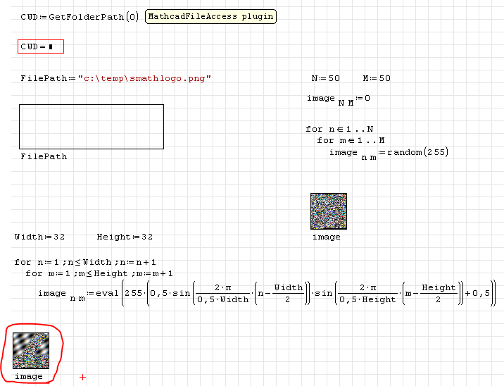 Resizing requires just to touch the handles, then the size jumps to correct value. One has to be careful with image size, using 128x128 for the second image, Smath crashed when I tried to rename the variable image.