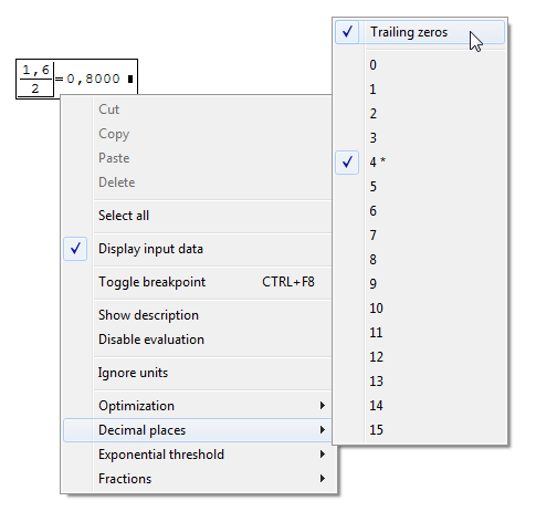 When I specify the number of decimal places in the result of any expression and the last digit is zero then it is also cut.