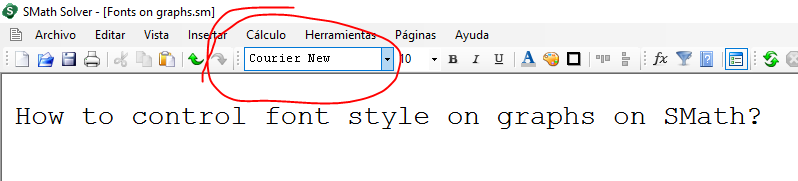 The point is that the text (monospaced) in the native SMath graphics is displayed correctly, but not in the graph plotted by the x-y graph plugin. There is no way to control which font is used for the text in the x-y plugin through the settings. It would be really amazing if you could choose which font you would like to use.