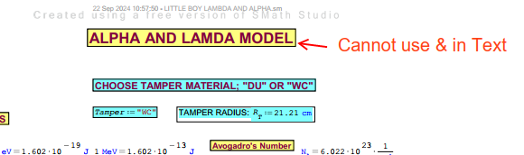 SMath Forum SMath Studio Bugs & Problems Bug in Text Field 1 Pages (3 items) Bug in Text Field - Does not accept & in text - Messages Go to last post #1 Posted: 9/23/2024 12:10:03 AM RegRetired 8 likes in 143 posts. Group: User I just updated to the most recent version. I don't know if this was a problem in previous versions. Reg CurryLoveland, CO #2 Posted: 9/23/2024 12:46:51 AM Davide Carpi 1,436 likes in 2,918 posts. Group: Moderator Possibly related/same: https://en.smath.com/forum/yaf_postst25354_Problem-in-text-area.aspx If you like my plugins please consider to support the program buying a license; for personal contributions to me: paypal.me/dcprojects 1 users liked this postRegC 9/23/2024 12:54:00 AM #3 Posted: 9/23/2024 12:54:05 AM RegRetired 8 likes in 143 posts. Group: User Thanks Reg CurryLoveland, CO 1 Pages (3 items) New Posts No New Posts
