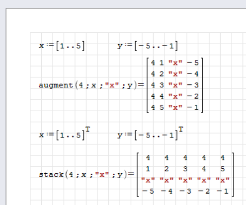 - Functions stack(..) and augment(..) improved to automatically expand scalar arguments to the vectors of appropriate size;