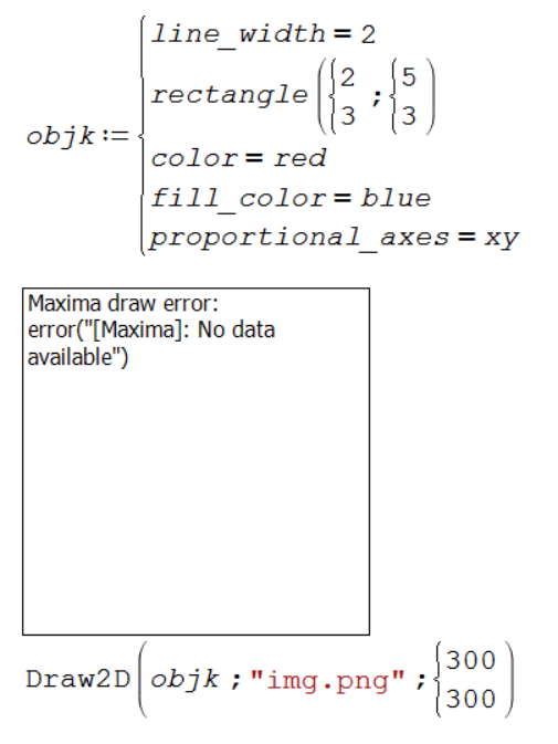 You mixed both approaches. Thus either put objk in the placeholder of the maxima region or put the full Draw2D command in the placeholder of an image region.