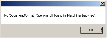 The issue with "DocumentFormat.OpenXml.dll" not found when you create and run an .exe can be resolved by removing the reference to the .dll from the "References" section in your extention solution. You do not call this .dll anywhere in the extension so it is not needed. When I do this, I no longer get the missing .dll error.