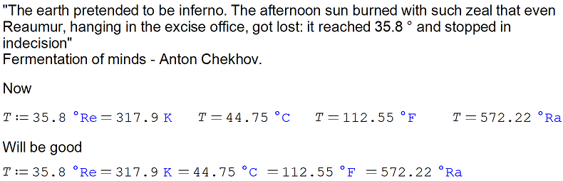 - Even if you limit it to just temperature units, change in temperature is still a temperature unit (i.e., 'Δ°C; 'Δ°F; 'Δ°Re) (e.g., ... = 112.55°F⛅ = 572.22°FΔ = ...)