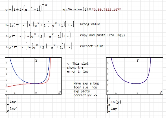 SMath Forum SMath Studio Bugs & Problems ln bug 1 Pages (1 items) ln bug - Messages Go to last post #1 Posted: 6/16/2021 3:26:51 PM Alvaro 1,081 likes in 1,754 posts. Group: User Hi. There are a bug in ln. Please see attached.ln_bug.sm (8.91 KiB) downloaded 967 time(s).Best regards.Alvaro. 1 users liked this postsergio 6/16/2021 5:07:00 PM 1 Pages (1 items) New Posts No New Posts
