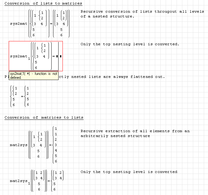 EDIT: The function is avaiable, but obviously there have been changes in handling text indices. I choose sys2mat.1() from the dynamic assistant but the .1 won't display as text index. Once I delete the dot and type it in again, then the text index appears and the function becomes undefined.