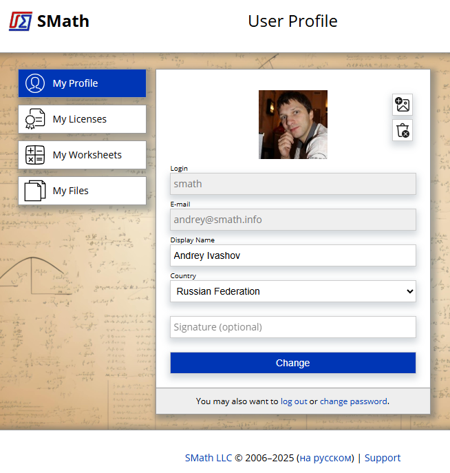 - Both English and Russian parts of the Forum now uses SMath user profile, so once you logged in on smath.com you can use the Forum as well.