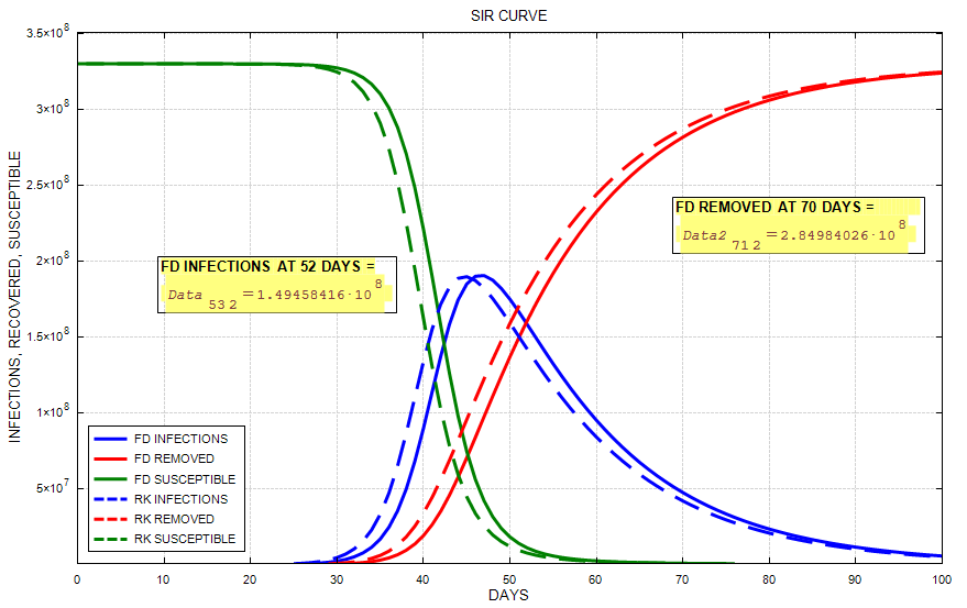 This is an outgrowth of the thread under Samples, al_nleqsolve issues. That thread evolved into a discussion of finite difference methods versus the SMATH ODE solvers. I have simplified the coupled differential equations so there is no nesting in the finite difference approach and the reproduction rate, Ro, is constant. This file has three coupled differential equations solved by finite difference and the ODE Runge-Kutta solver. They do not agree. Does anyone see the cause of the difference?