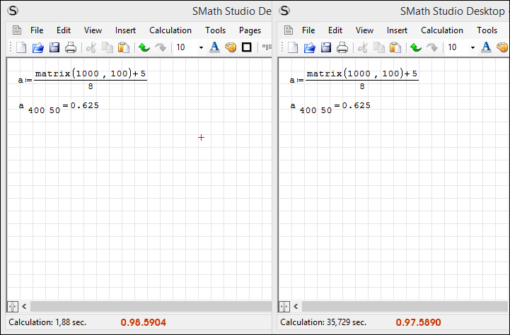 • Calculation performance significantly improved (see timings in the following screenshots);