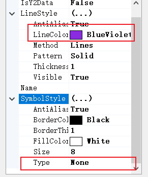 2.Traces -> each trace's name , LineStyle-> LineColor, SymbolStyle->Type