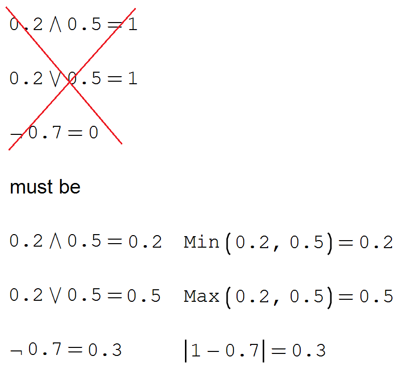 There is a feature request about enabling the use of infix, prefix and postfix notation like in Mathcad. Then you can define operators ∧.f, ∨.f and ¬.f for the fuzzy logic.