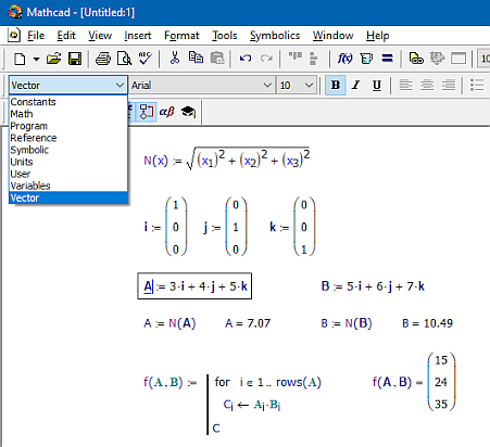 As a practical way to implement it, since no variable can start with a number, it could be that ~3A would be drawn as A and in the SMath file there would be a table in XML saying that for that worksheet there is a style called 'Vector' and it would be specified that it would be bold, italic and black, unlike the 'Global' style, in which the font is in normal style. In this way one could write things such as that A = norme(~3A) showed as A = norme(A), since 'A' and ~3A are different variables.