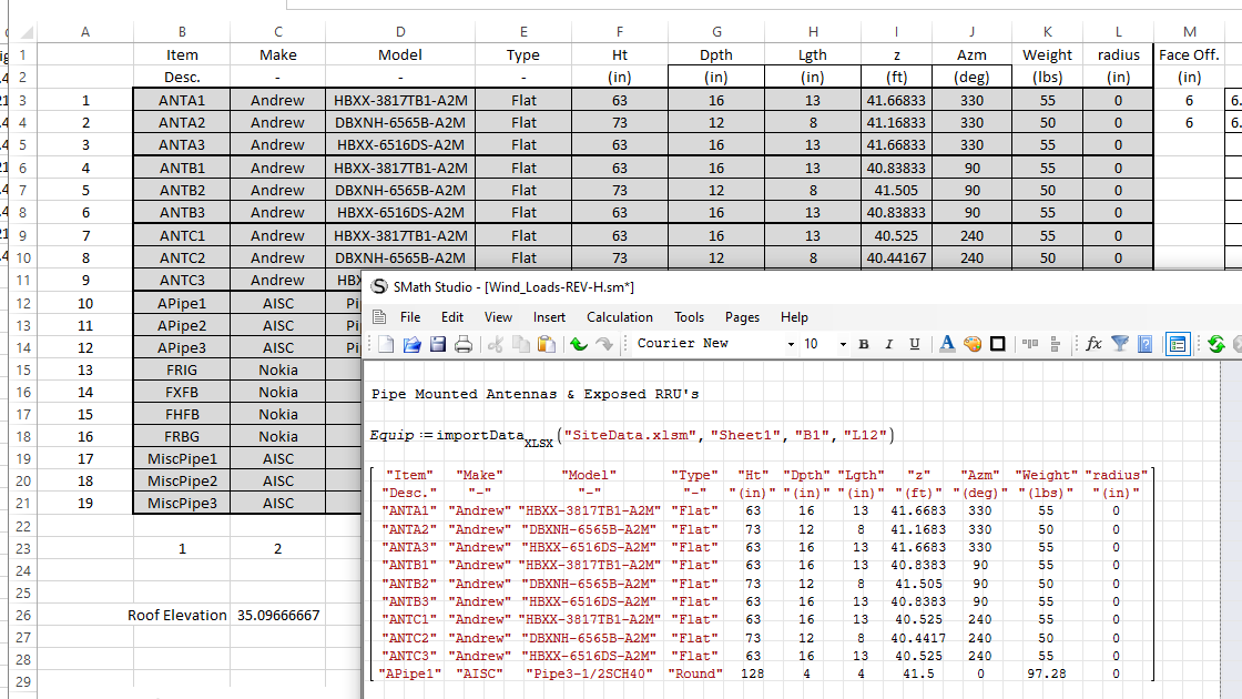 here is a snip with SMath and the excel sheet it imports from below.