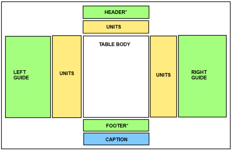 Is a region that show a SMath Studio numerical variable as written in a table; basically is an image, the look is customizable using the context menu (a cell editor like excel is too complicated to make for me); as for now there's only the body, I'll try to add other things (those shown in the dialog above and schematized below (colored boxes are all "optionals", as general idea); the hardest thing will be surely unit's handling