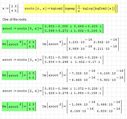 bqfrm2(1) - (x) converts complex matrix 2x2 to one-row biquaternion.