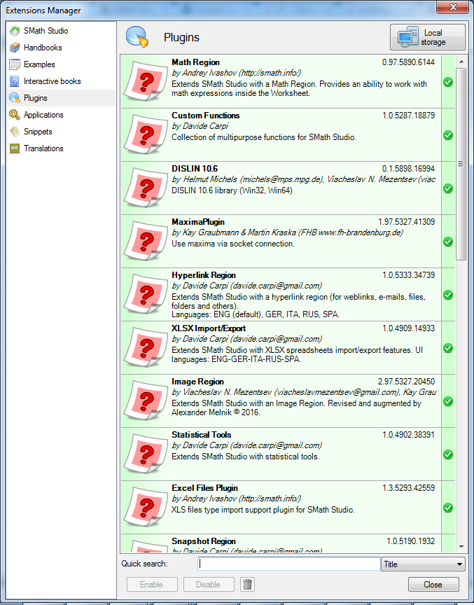 Something wrong with the SMath Studio I think, there is no working example because I can't save the worksheet. But if you want to try I can get the list of functions which was used in my example (you must manually enter each function ([Ctrl+C] [Ctrl+V]) and press equal sign).