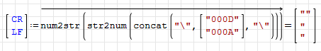 You can then handle text from both the mathcad block and description(), for example, using strrep(text,'CR,'LF)