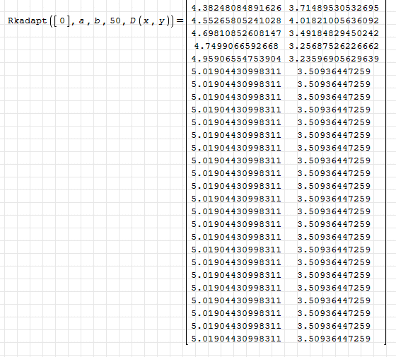 Rkadapt will fail with the error: "Index was outside the the bonds of the array". I know that uni made these two functions rkfixed() and Rkadapt() quite long time ago, and he also made much better ODE solvers in the meantime