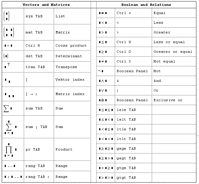 Help Snippet - Tables of SMath operators and their keyboard input - Сообщения
