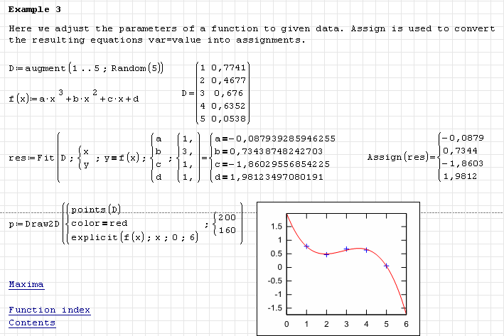 Форум SMath Математика Математические задачи Апроксимация 1 страниц (2 вхождений) Апроксимация - Как заменить в SmS функция MathCad'а linfit - Сообщения К последнему сообщению #1 Опубликовано: 02.11.2014 13:32:58 Scof1ld 0 сообщений из 2 понравились пользователям. Группа: User Здравствуйте, подскажите пожалуйста алгоритм написания подбора аппроксимирующей функции.Как заменить функцию linfit в SMath Studio? #2 Опубликовано: 02.11.2014 19:27:58 Martin Kraska 1 334 сообщений из 2 249 понравились пользователям. Группа: Moderator Плагин Maxima предоставляет функцию Fit(). Technische Mechanik mit SMath Studio: https://link.springer.com/book/10.1007/978-3-658-50592-9 1 страниц (2 вхождений) Новые сообщения Нет новых сообщений