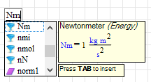 So a new unit Nm will be displayed in the dynamic assistant with the annotation "Energy".