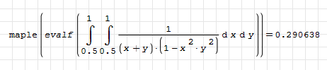 Форум SMath SMath Studio Questions Smath cannot calculate numerically this double integral 1 страниц (2 вхождений) Smath cannot calculate numerically this double integral - Сообщения К последнему сообщению #1 Опубликовано: 26.12.2024 02:08:29 Cornel 2 сообщений из 78 понравились пользователям. Группа: User Hi, #2 Опубликовано: 26.12.2024 05:15:54 Alvaro Diaz Falconi 1 076 сообщений из 1 748 понравились пользователям. Группа: User 1 страниц (2 вхождений) Новые сообщения Нет новых сообщений