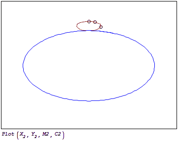 [RUS]Движение эллипса без проскальзывания с поворотом относительно заданной кривой. Улучшенная способ расчета движения точек эллипса только при помощи системы ду. Видно, что центр эллипса движется по некой кривой, зависимой от эллипса и эквидистанты к неподвижной кривой. При окружности центр бугет двигаться по эквидистанте.[/RUS]