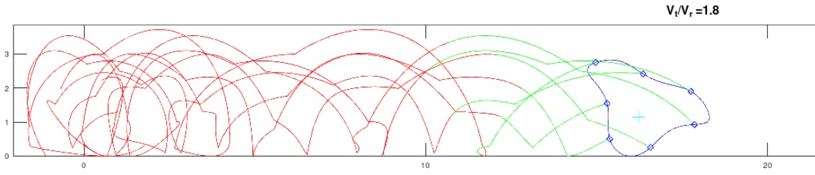 Below is a plot of the translational velocity of the oval at which the velocity at the tangent point is zero.