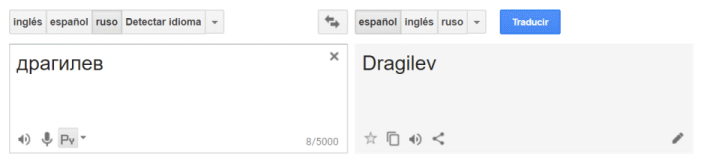 Translating to spanish it is: https://translate.google.com.mx/#ru/es/%D0%B4%D1%80%D0%B0%D0%B3%D0%B8%D0%BB%D0%B5%D0%B2