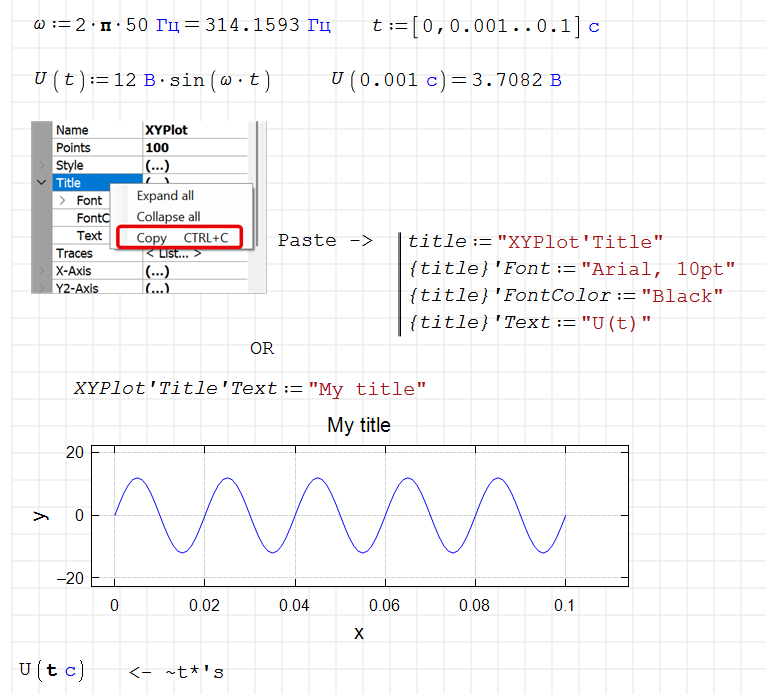 Now, is there a reasonably simple way to get t [s] and U [V] to the axes? Or at least some description. I really love SMath, and I didn't need the plots because I am mostly doing some mechanical engineering and machine design linear calculations. But as soon as I showed that software to my more electrical engineering-focused students, they came up with this question. I have been using Mathcad (v14 and 15) for a long time, and there is no problem doing this task very easily. I have been really surprised by how big a problem it is for SMath.