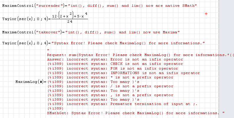 - Maxima() with any argument accepted by SMath preprocessing
