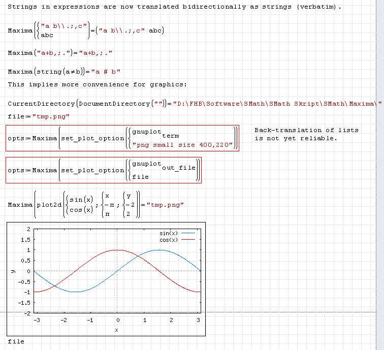 - Unidirectional (SMath to Maxima) translation of relational and boolean operators