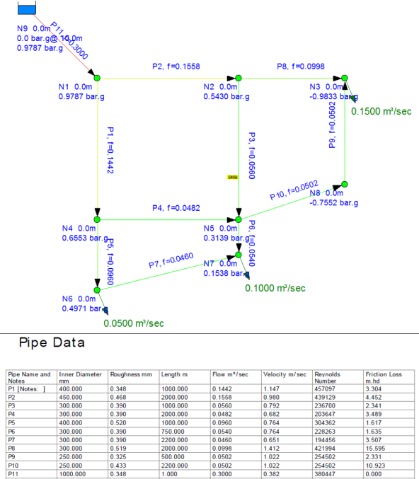 Can you please post the Pipe Data Table (with Pipe Number, Inner diameter, ..... Re, Friction Head loss)