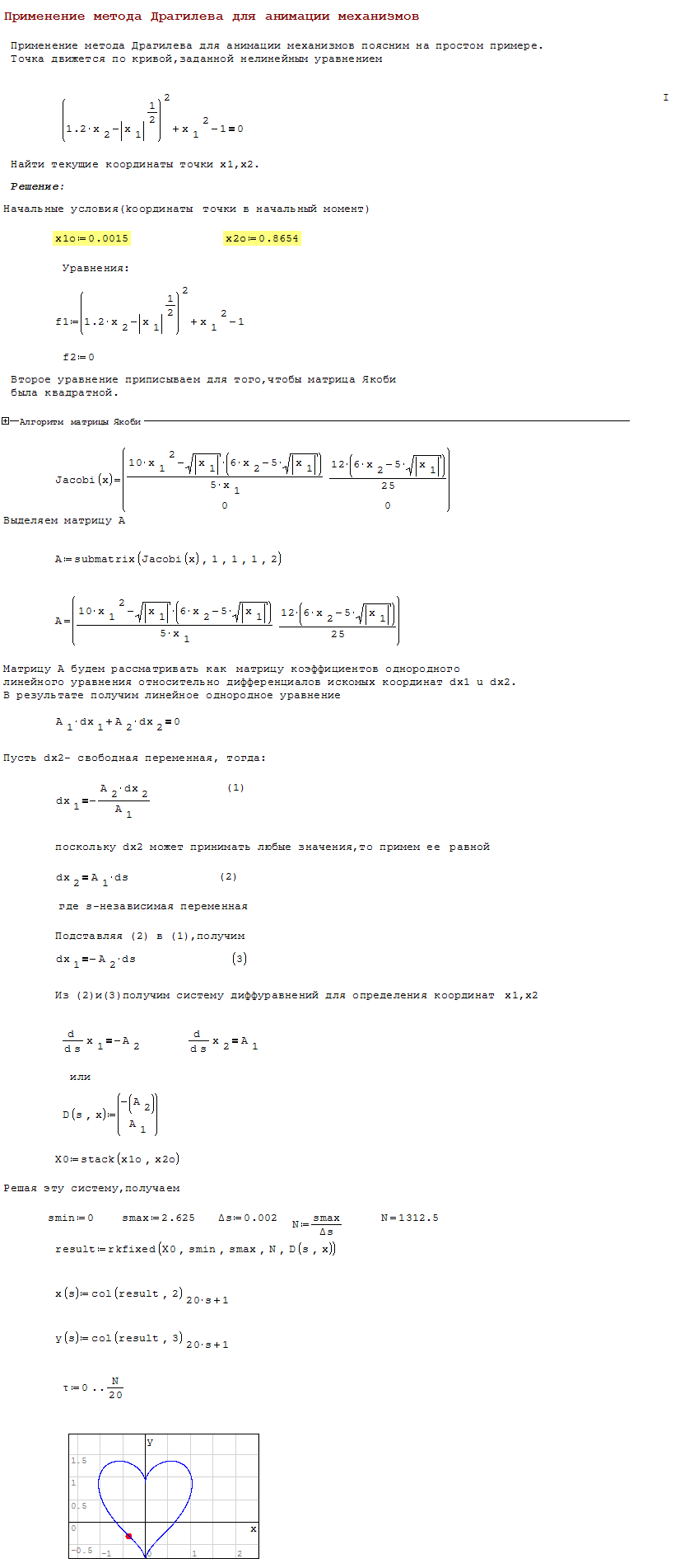 1.Поясняющий пример.Tочка движется по кривой,заданной нелинейным уравнением