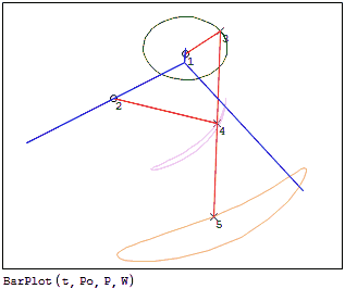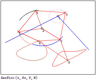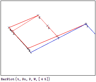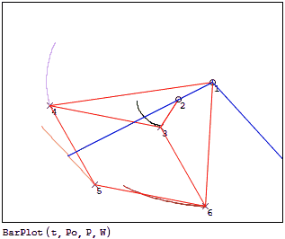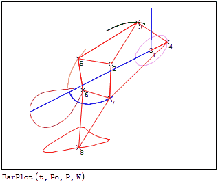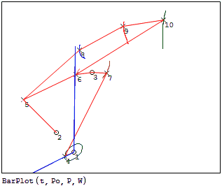 Furthermore, [P,W] = BarPW(θo,E,Po,Pg) returns the positions of the nodes (P) and the wireframe (W) for the animation as 'clean' matrices, that is, it allows further calculations, such as the stresses on some element in each stage of the cycle.