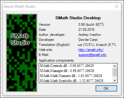 I'm glad to inform that [USERLINK]Davide Carpi[/USERLINK] agreed to try to work together with me on SMath Studio as a developer! We already started and as a result you can see new nightly build prepared together. BTW, it has updated About dialog