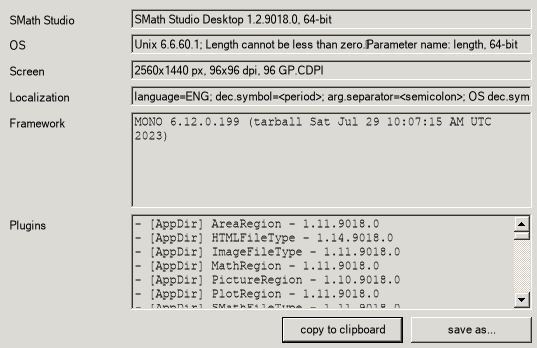 Your little fix did not work on my MXLinux. SmathStudio installs, but every time I try to load or save a file, SmathStudio stops and is showing the before mentioned message.