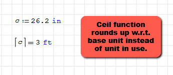 WroteDavide, thanks for developing this plugin; I use several function in here regularly. One that I just tried using that could be very useful for me is the Ceil function. In engineering we often want to always round up, so this would fit that bill well. However, it seems to only round up with respect to the base unit instead of the unit actually used. So instead of rounding a result up to the next inch (or millimeter), it rounds to the next foot (or meter). Would it be possible to account for the unit in that evaluation somehow?