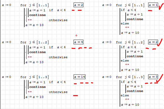 If if(,,) is used, continue causes the rest to be skipped (as expected).