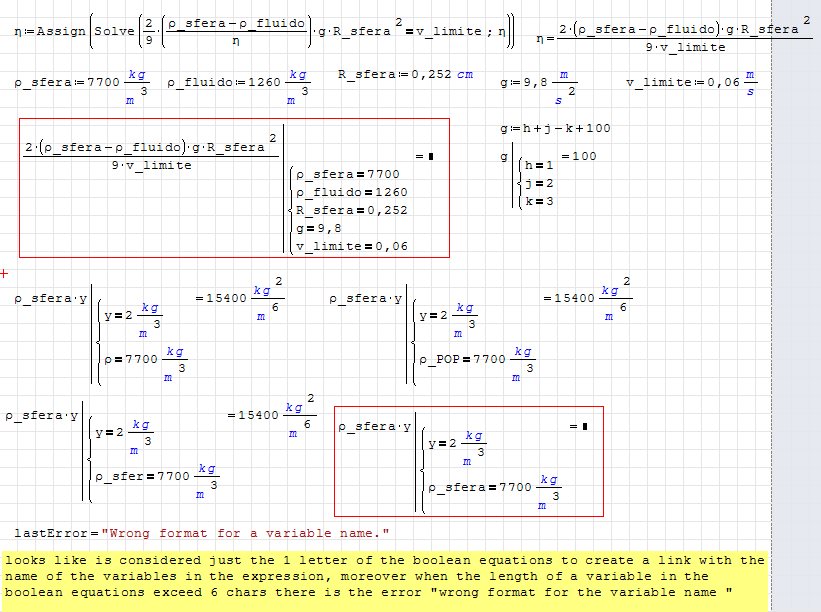 Wrotebut is in an attempt much more difficult to use a same symbolical equation obtained through a solve in different parts of a documents with different values of the variables without using each time the technique of the disable evaluation ( at least is the only way I have found to address this issue ... it doesn't exist a command that allow to reuse a symbolical equation after some assignment have been done to the values of the variables referenced in it ).